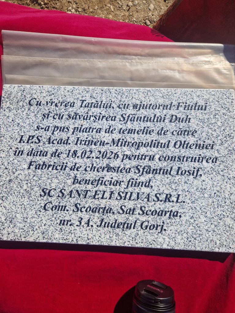 Mitropolia Olteniei a demarat miercuri 18 februarie, în comuna Scoarța, județul Gorj, lucrările de construcție a fabricii de cherestea „Sfântul Iosif”.