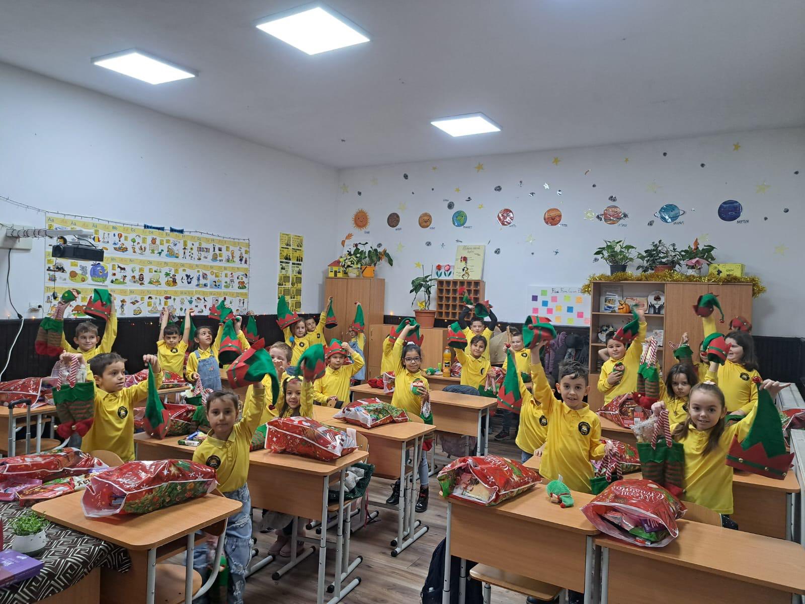 Copiii din clasele primare de la Școala Gimnazială „Victor Popescu” și Liceul Tehnologic Roșia-Jiu au primit 213 pachete cu dulciuri,…