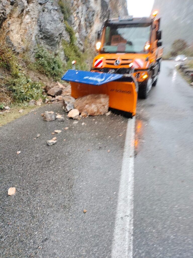 Pe Drumul Național 57, în zona localității Dubova, angajații Secției de Drumuri Naționale Orșova au intervenit pentru îndepărtarea aluviunilor și a obstacolelor căzute pe carosabil.