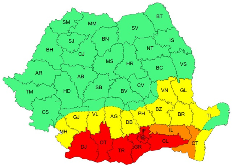 Cod roșu de caniculă în sudul țării
