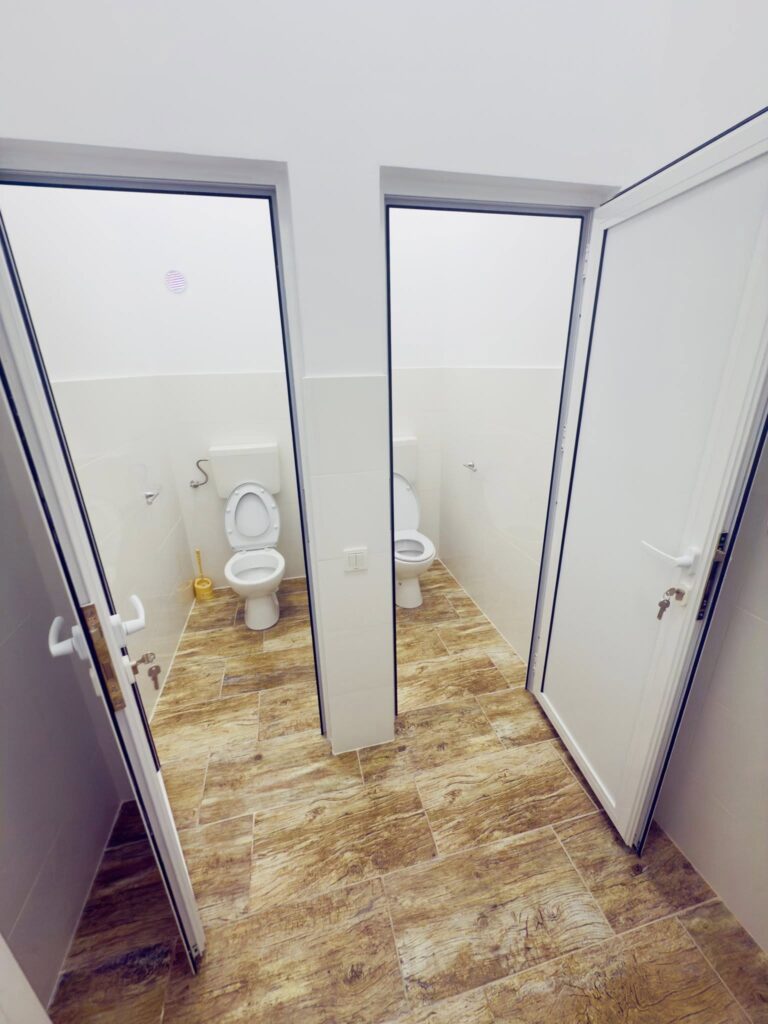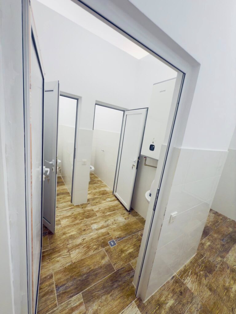 În total, au fost amenajate șase grupuri sanitare: câte trei pentru școală și grădiniță, separate pentru fete, băieți și persoane cu dizabilități.
