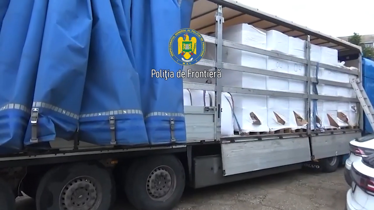 Automarfarul, semiremorca şi întreaga cantitate de ţigarete au fost reţinute în vederea continuării cercetărilor.