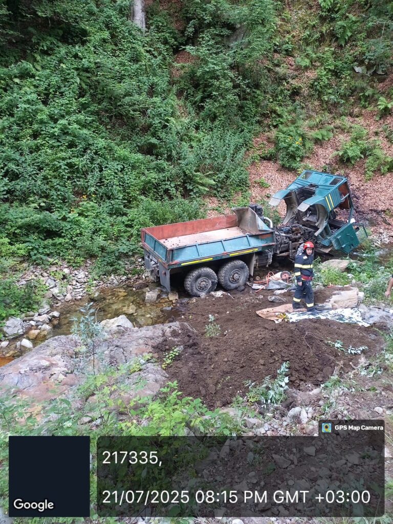 Tragedie în județul Gorj. Un autocamion folosit în exploatarea lemnului s-a răsturnat în localitatea Gureni, comuna Peștișani. Două persoane au decedat în urma evenimentului.